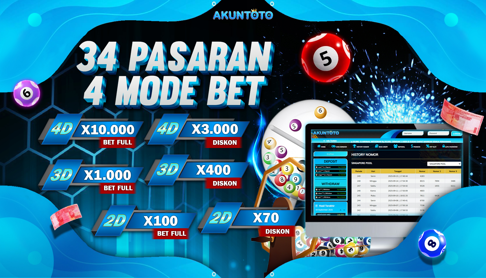 SELAMAT DATANG DI AKUNTOTO. SITUS SLOT, LIVE CASINO & AGENT TOGEL ONLINE TERBESAR DAN TERPERCAYA DI INDONESIA. MINIMAL DEPOSIT Rp.10.000,- & MINIMAL WITHDRAW Rp.50.000,- DENGAN 1 USER ID SUDAH DAPAT MAINKAN SEMUA PERMAINAN
